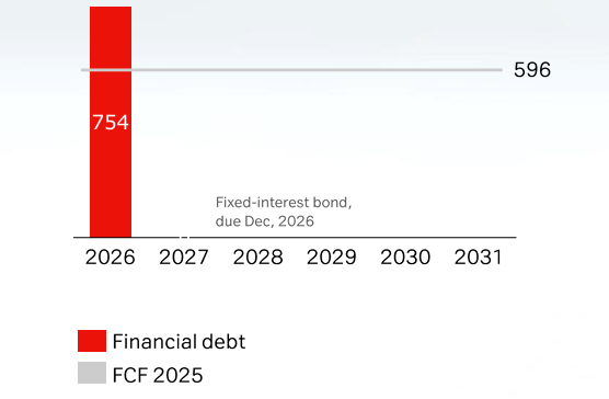 Financial debt maturity profile total EUR 754 Mio.
