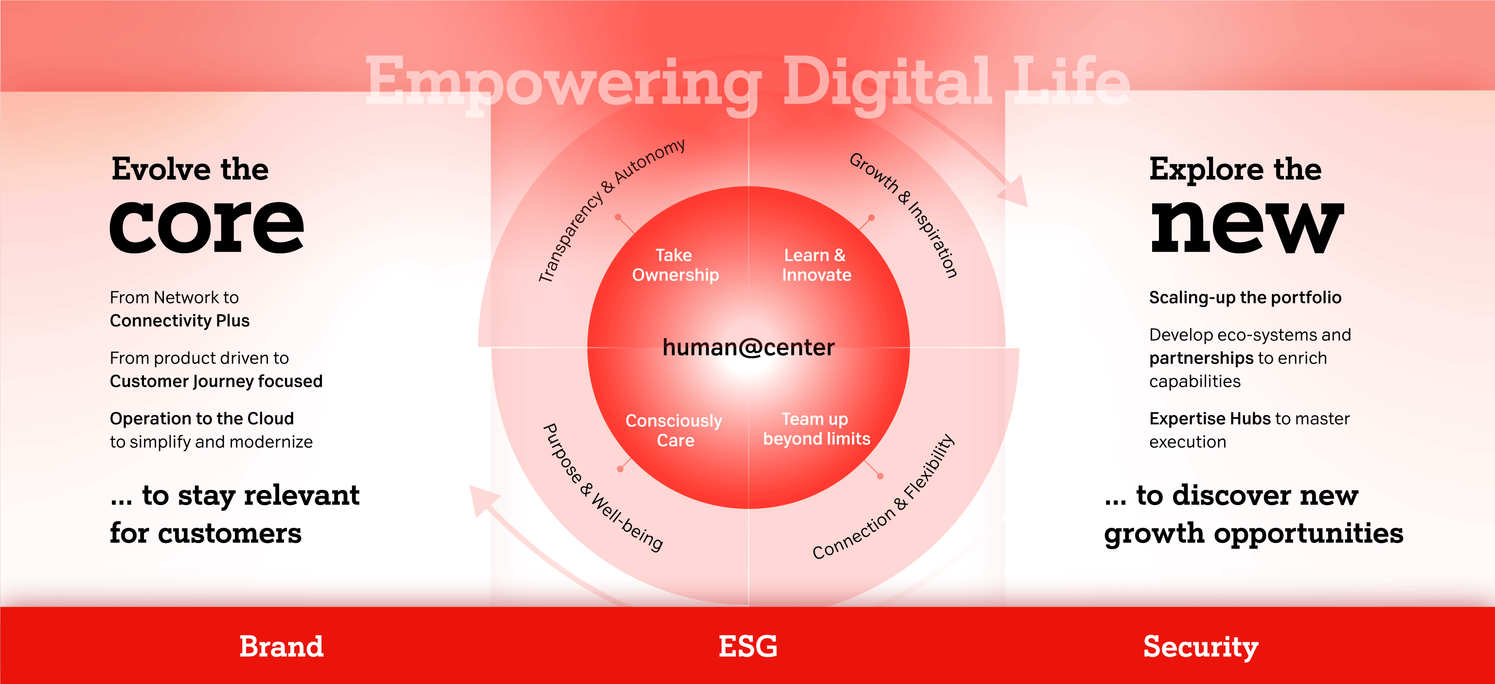 The aspiration to stay relevant for customers was a primary motivator for refreshing the corporate strategy. Humans (i.e., employees, customers,